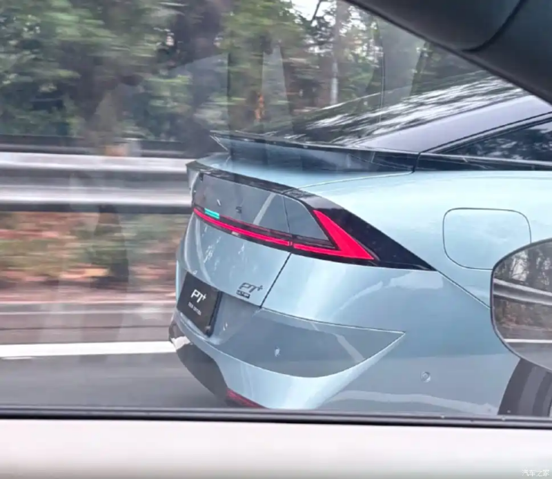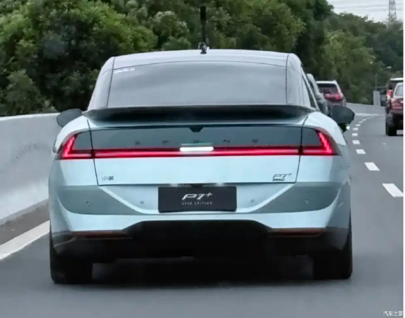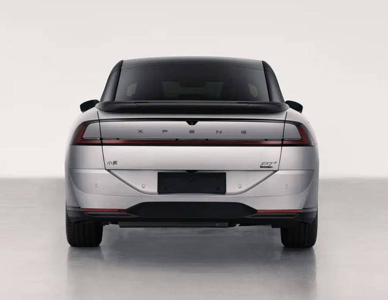 Сзади блок фонарей был переработан: теперь в нём использована кольцеобразная схема с размещённой в центре буквой бренда Xpeng и вспомогательным синеватым ходовым огнём. Задний бампер также получил оптимизированную окраску в цвет кузова. Утончённый «утиной хвост» на заднем стекле остался без изменений. На правом нижнем углу отмечается шильдик «P7+ power ultra».